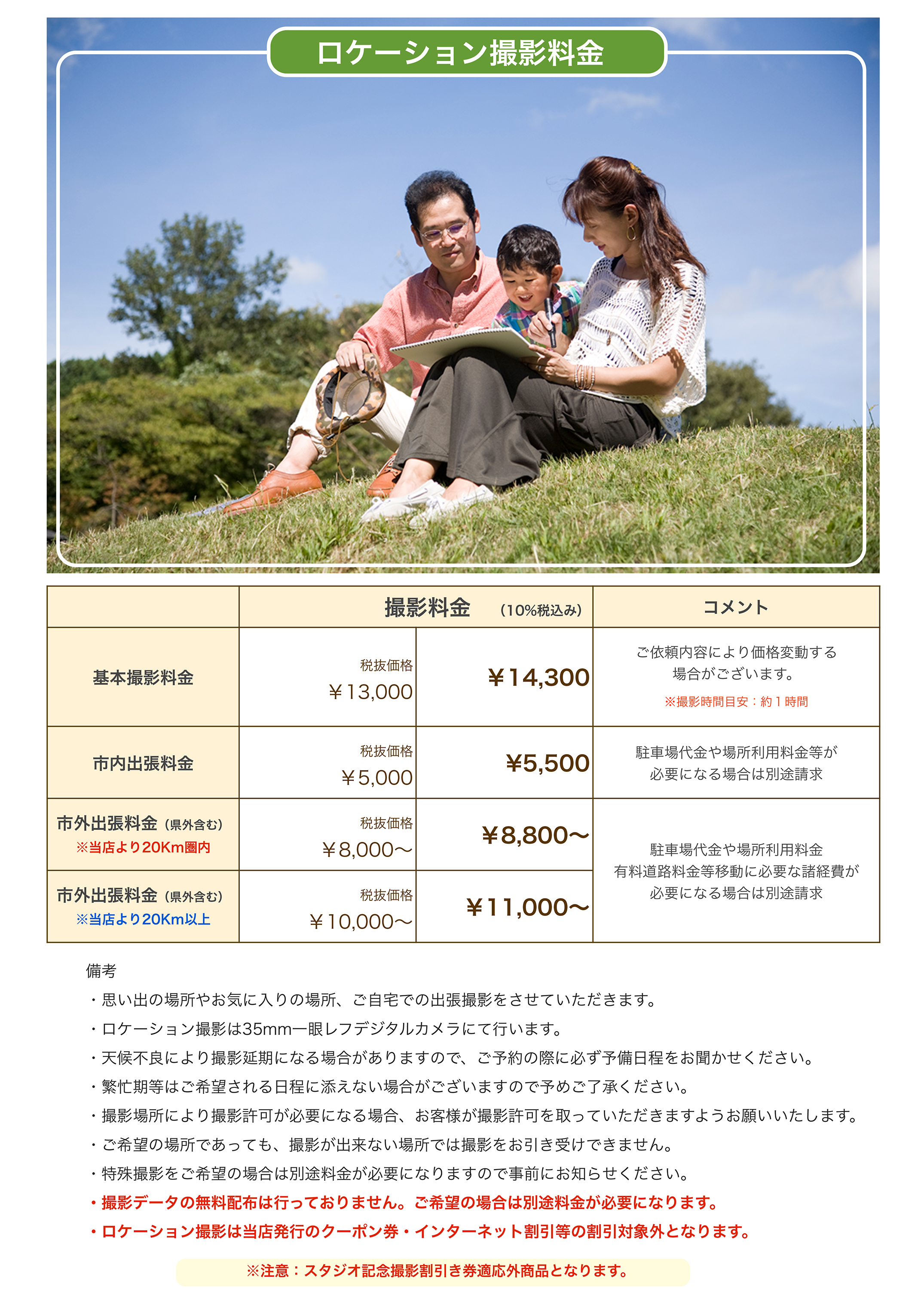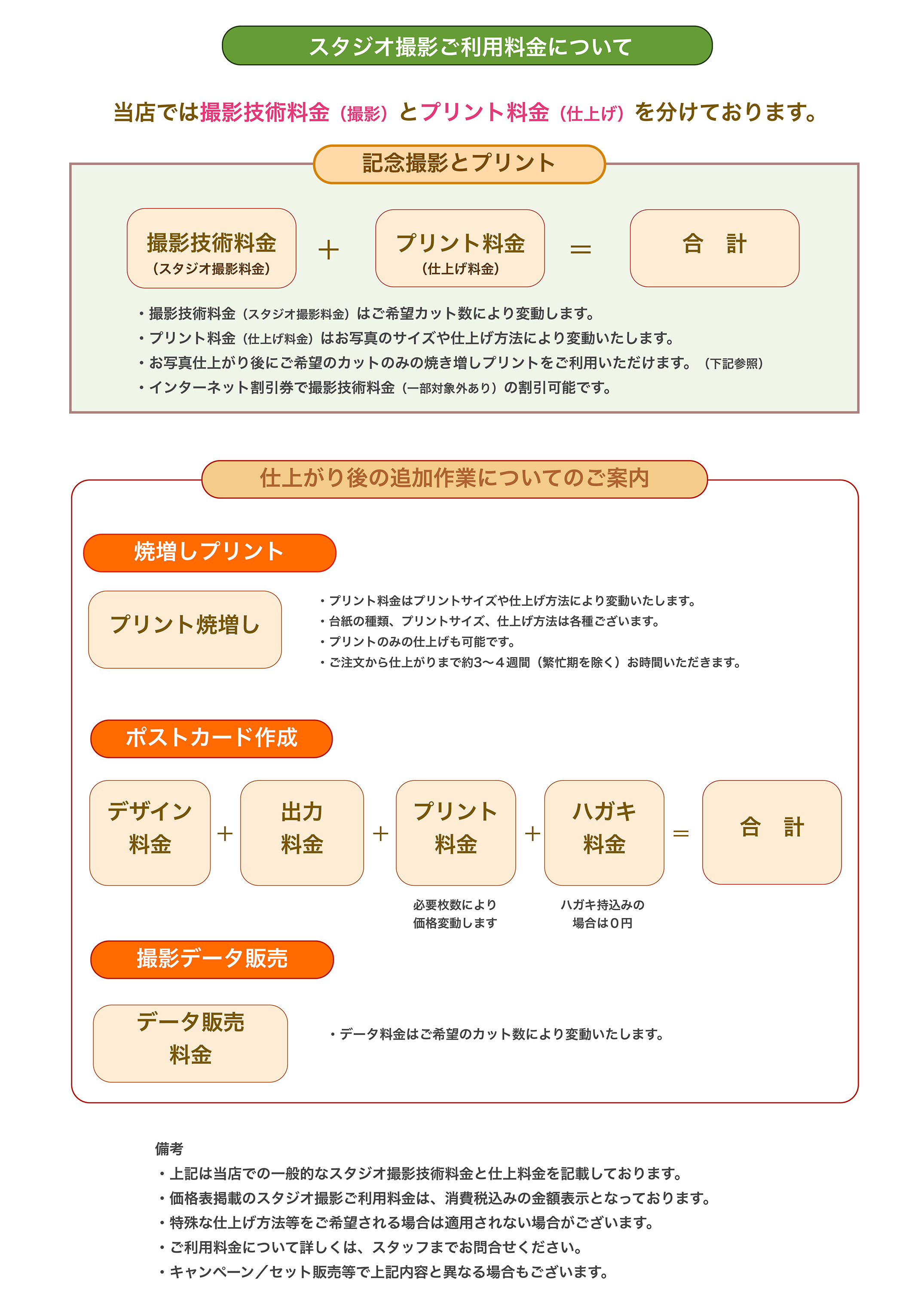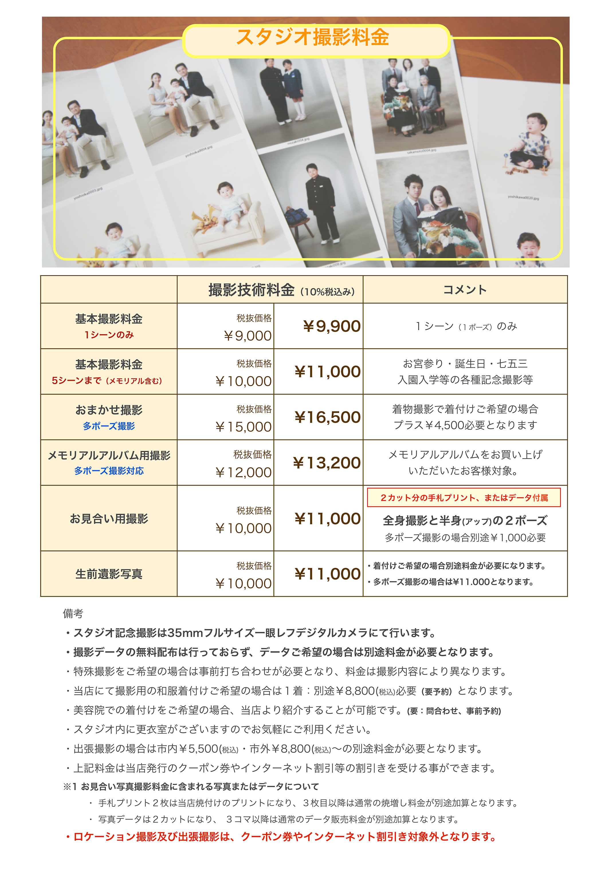 ::::光画園スタジオ記念撮影 価格表::::