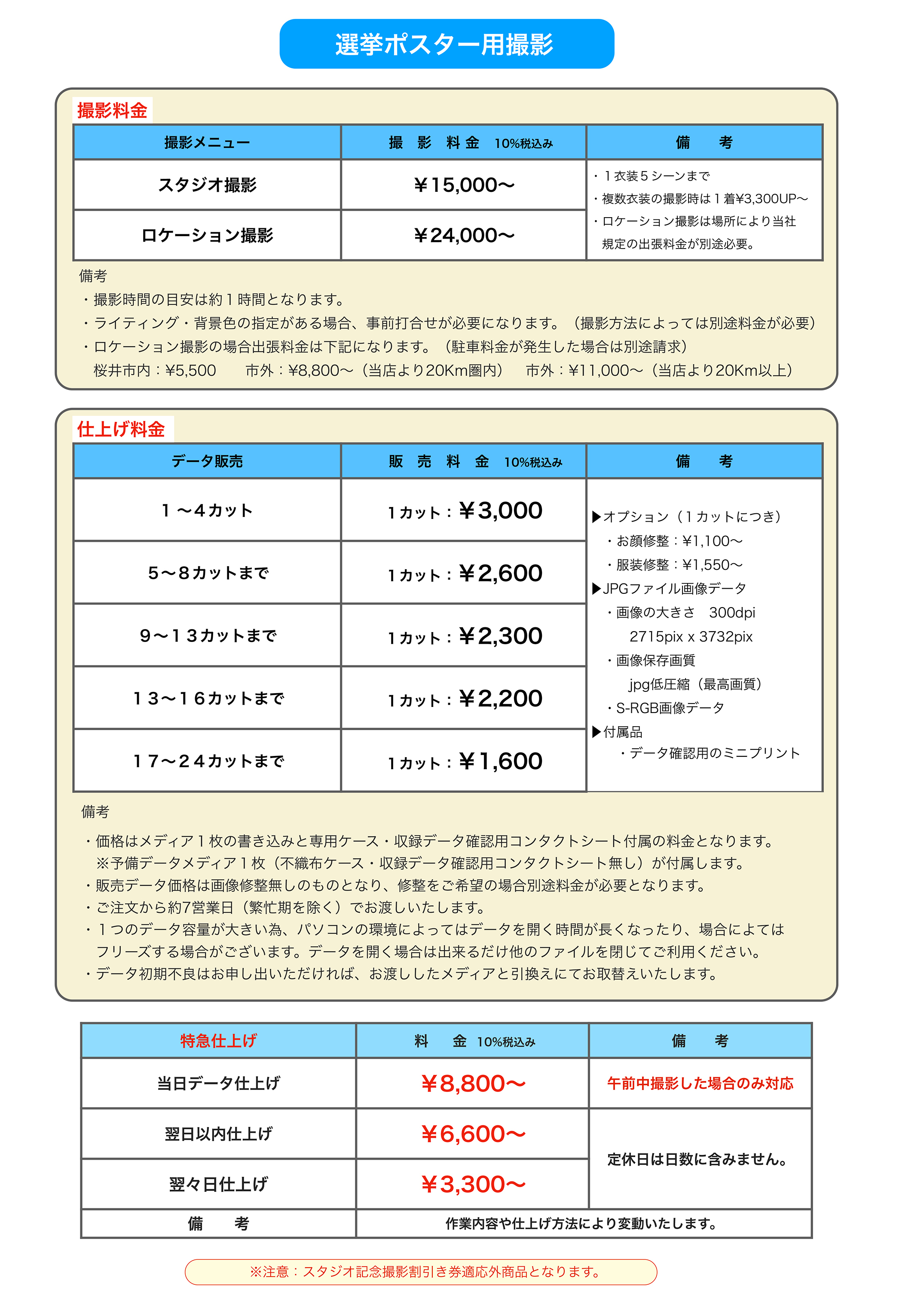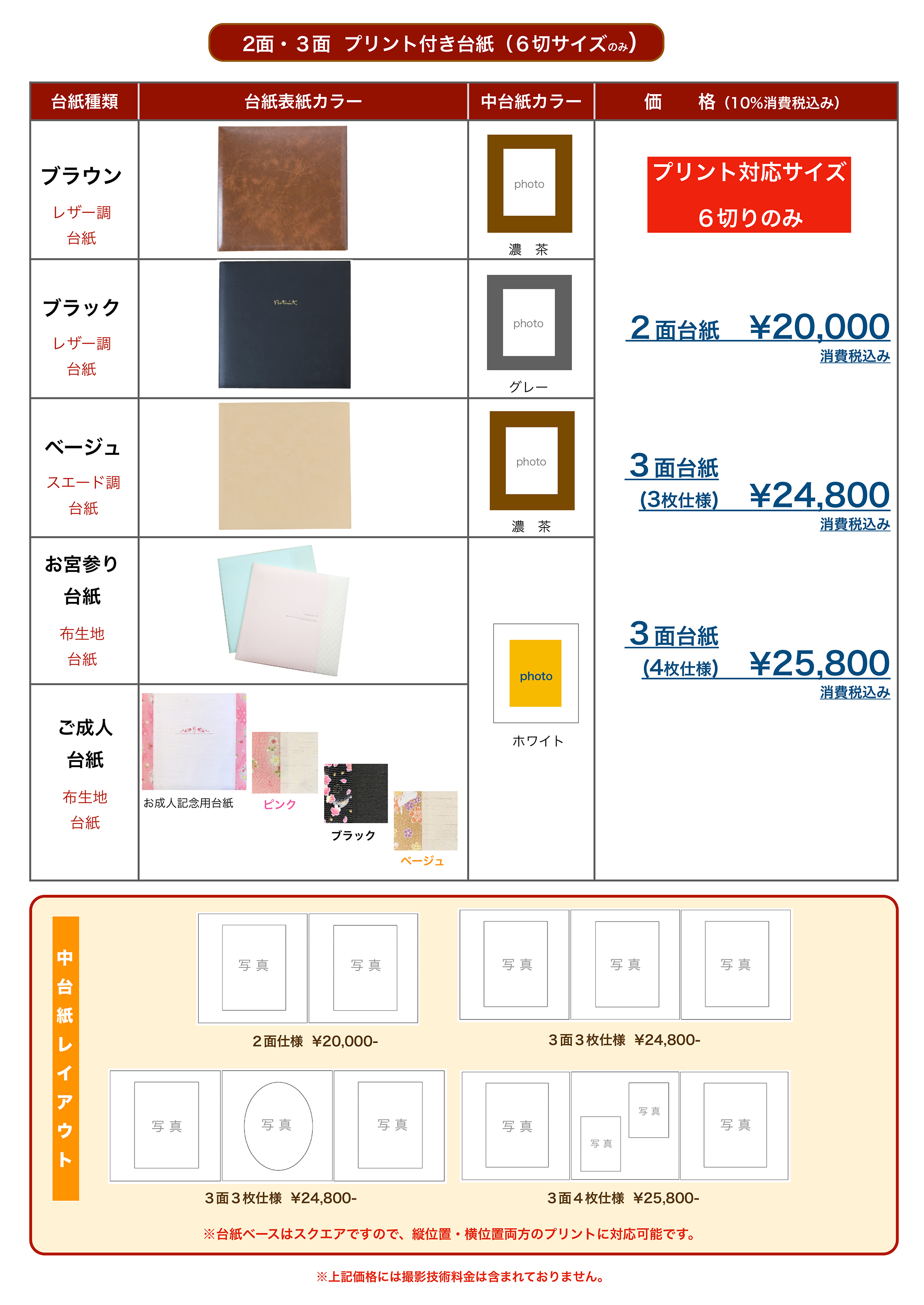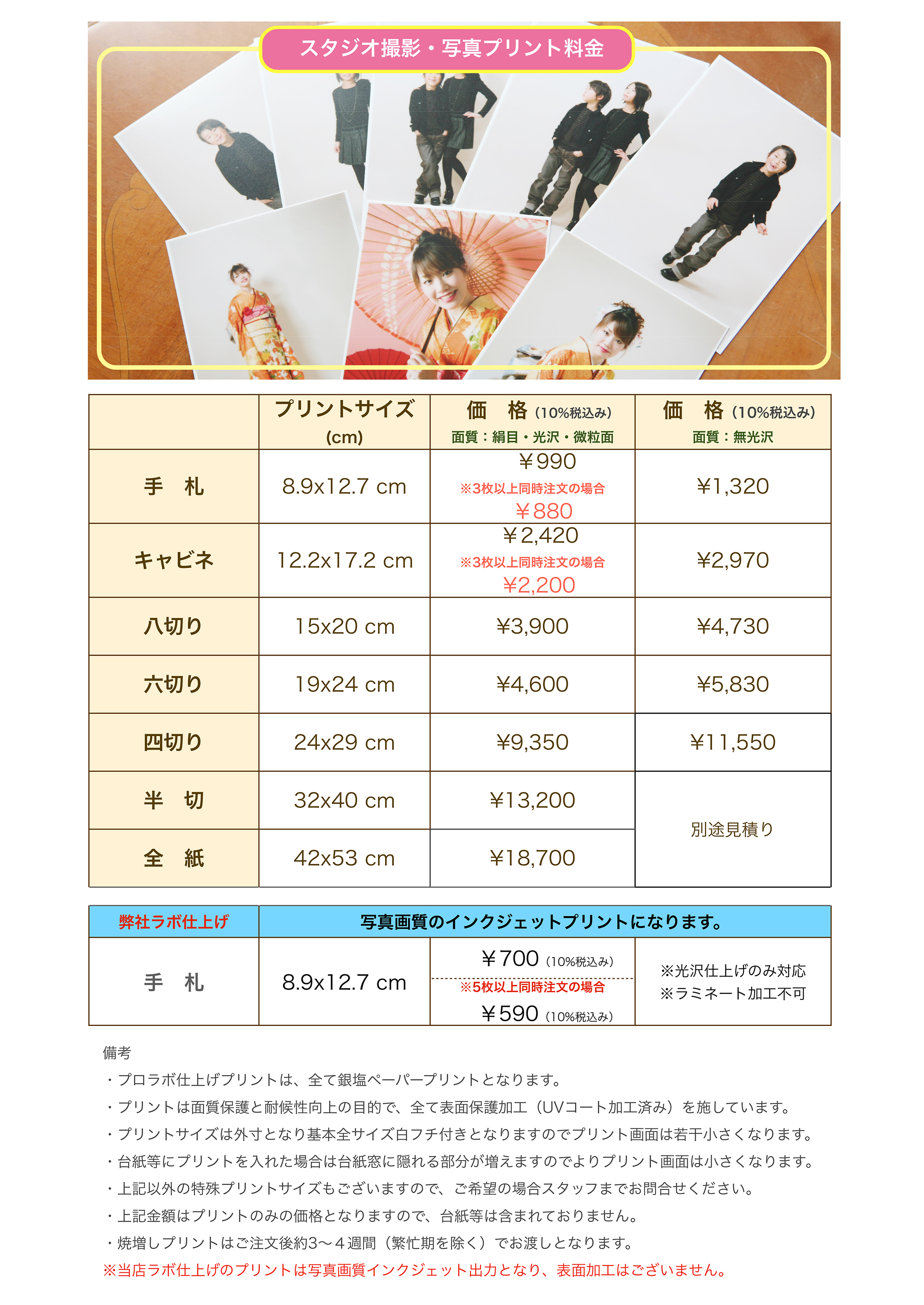 ::::光画園スタジオ記念撮影 価格表::::