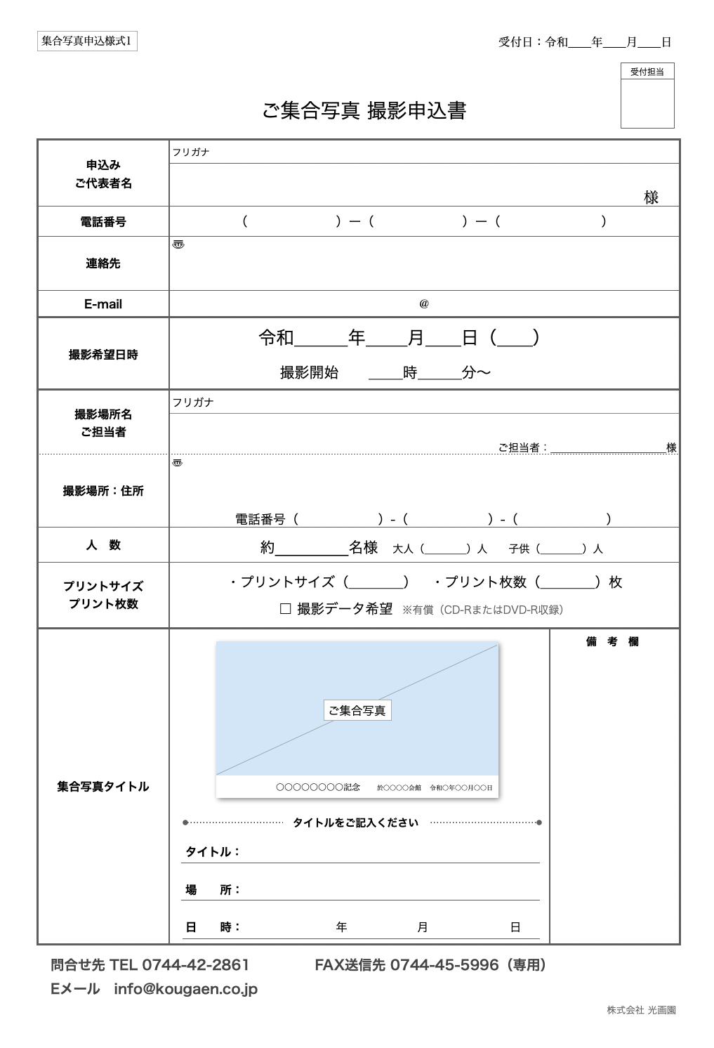 ご集合写真 撮影申込書